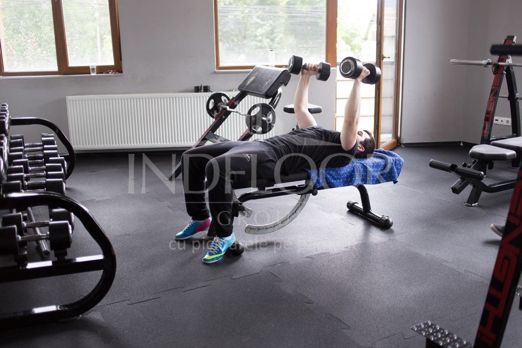 In luna iunie 2016 echipa Indfloor Group a finalizat amenajarea unei sali de forta din Baia Mare, cu pardoseala din cauciuc in dale, tip puzzle. Acest tip de pardoseala sportiva este solutia ideala pentru acoperirea suprafetelor din sali de forta, fitness, aerobic, etc. Dalele din cauciuc sunt disponibile in sistem puzzle, ceea ce inseamna un timp scurt de instalare. Grosimea pardoselii din cauciuc este de 10 mm, astfel ca gradul de absorbtie a socurilor si zgomotelor este ridicat.